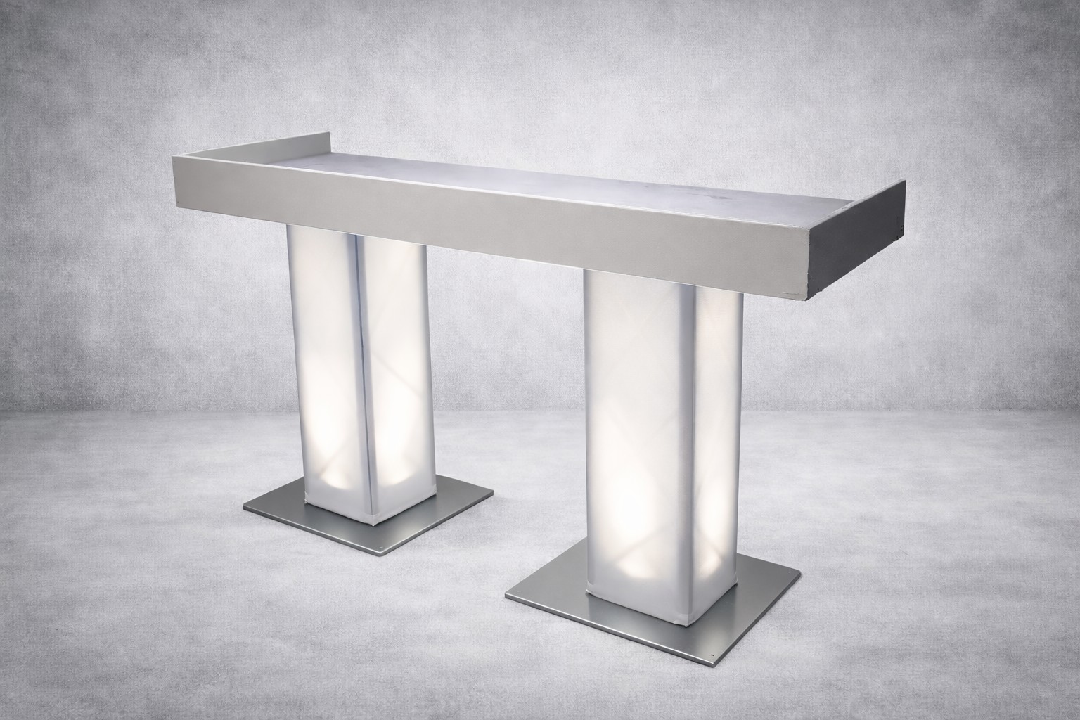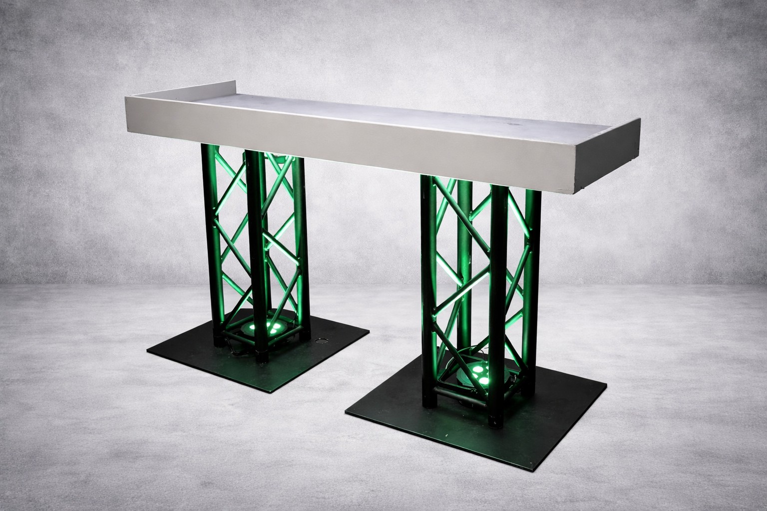 Deze DJ booth bestaat uit een afgewerkt werkblad, ondersteund door twee zuilen met een stabiele metalen voet. De booth is geschikt voor gebruik als DJ-opstelling of presentatiebalie en is inzetbaar bij zowel zakelijke als feestelijke evenementen. Door het neutrale ontwerp is de booth eenvoudig te combineren met diverse licht- en geluidsopstellingen.