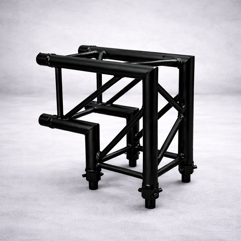 De Eurotruss FD34 3-weg hoek is een robuust en professioneel trussdeel dat veel wordt gebruikt bij podia, evenementen en vaste installaties.