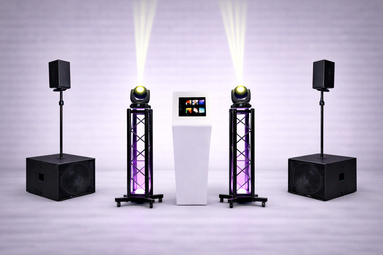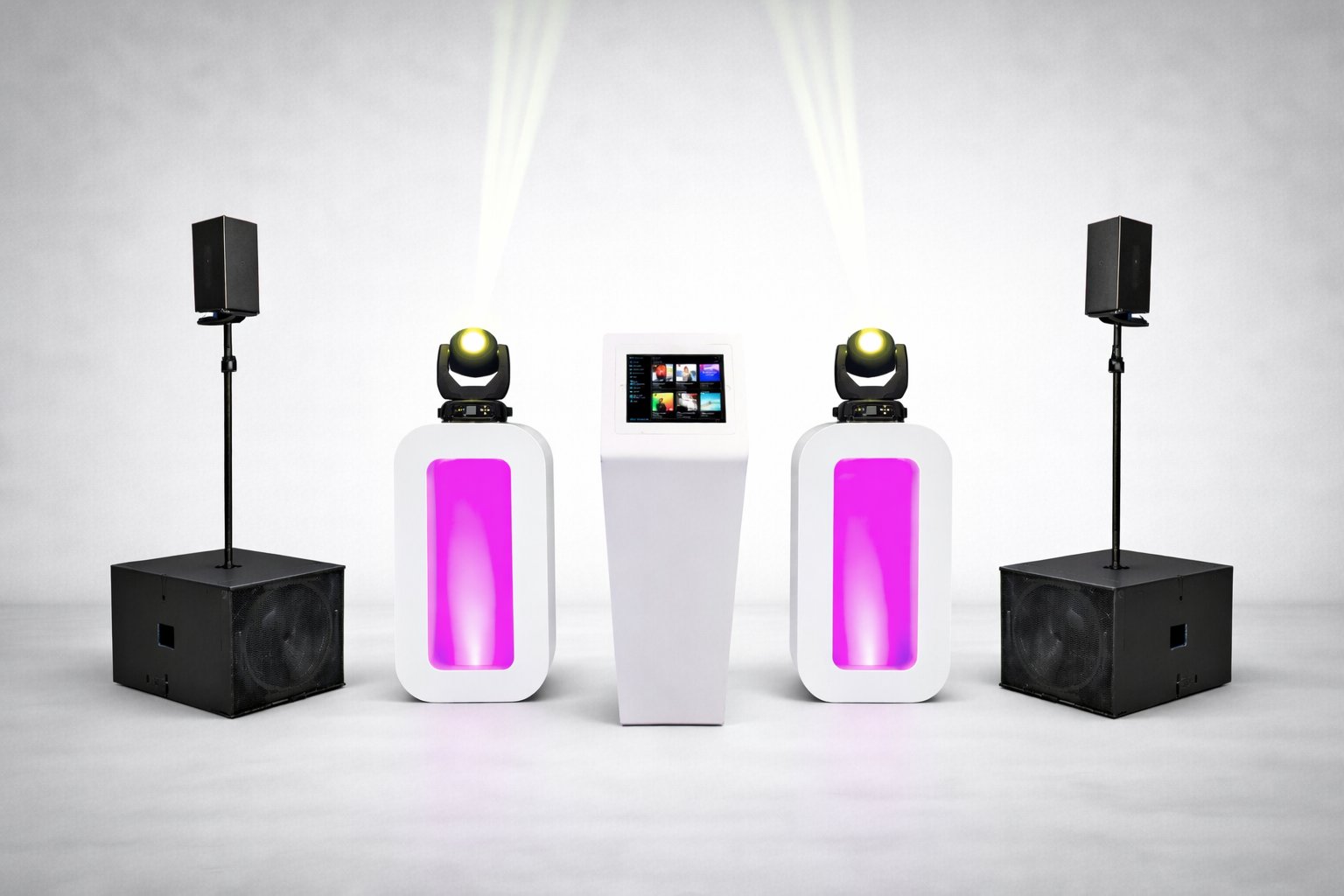 Party Set 2 is een flexibele speakerset die eenvoudig groter of kleiner kan worden samengesteld, afhankelijk van het event. In combinatie met een moderne U-Box is de set perfect voor het afspelen van muziek. De set wordt compleet gemaakt met een stijlvolle lichtset die zorgt voor extra sfeer en beleving op de dansvloer – ideaal voor feesten, borrels en evenementen waar ambiance net zo belangrijk is als geluid.